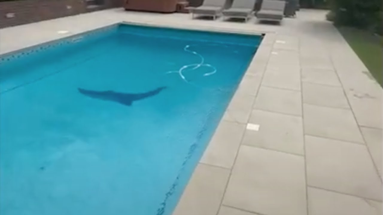 We’ve completely taken away the old sandstone paving from around the pool. We’ve completely done the new pool surround. Today we’re doing the mitre cuts on the corners. We replaced it with some new porcelain from London Stone. Really good product around the pool.